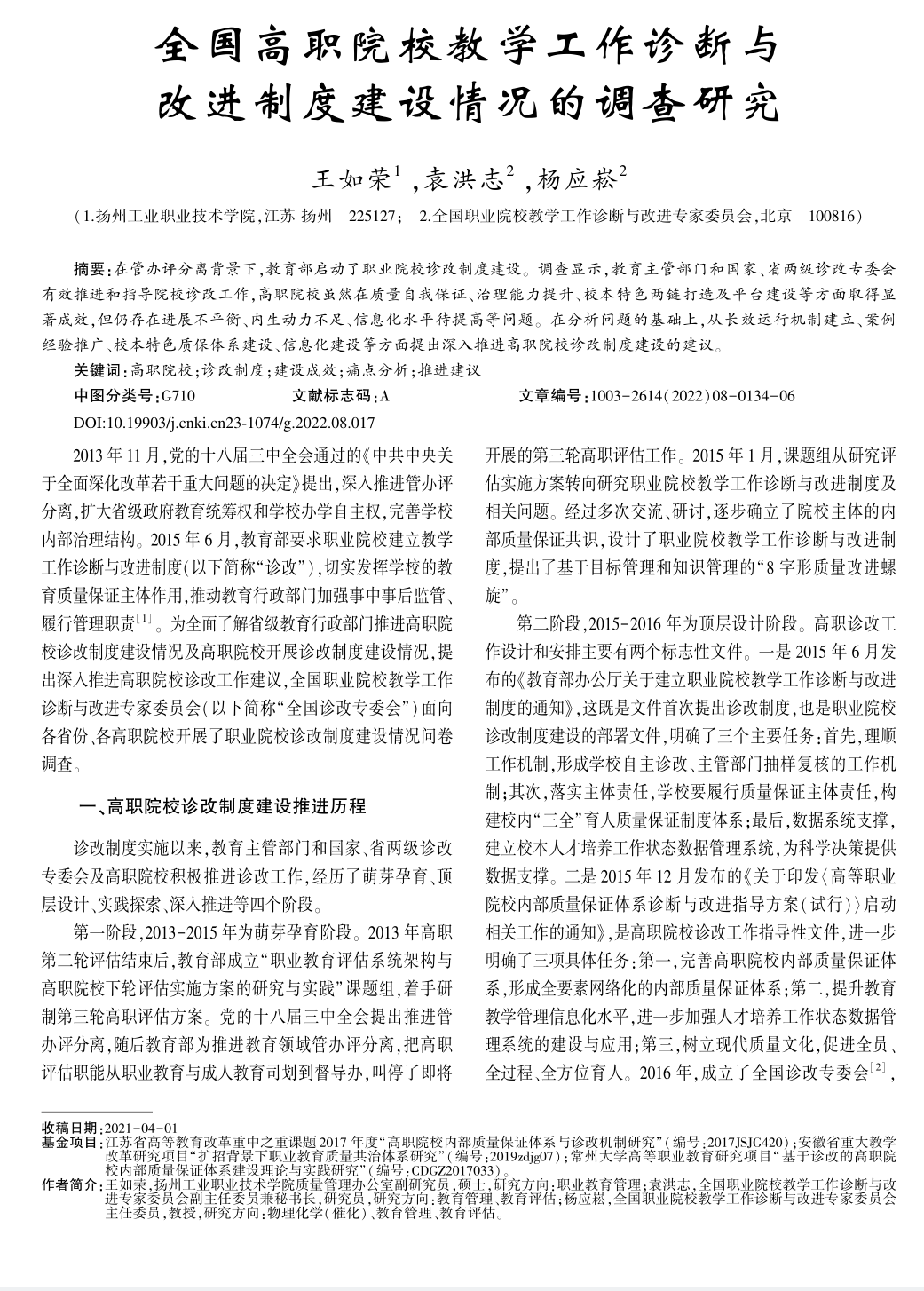 高职院校教学工作诊断与改进制度建设:现状调查、案例分析与发展思考