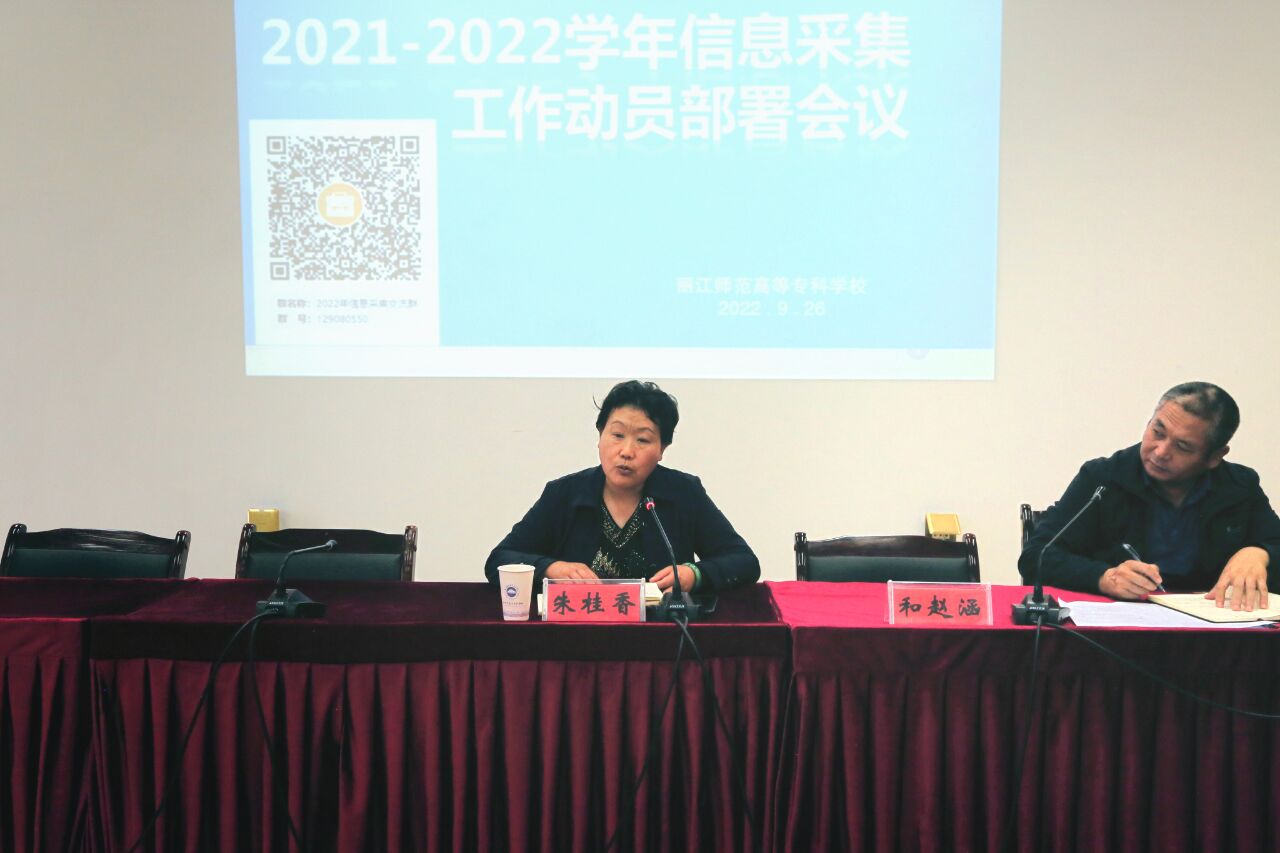 根据教育部职成教司《关于做好职业教育2021—2022学年信息数据采集工作的通知》的要求,为做好学校办学数据检测监测,提升教育数字化治理水平, 9月26日下午,教学质量监控与评估中心召开了2021—2022学年办学信息数据采集工作会议。各学院院长、分管教学副院长、学院教务办、学工办主任、专业负责人和相关职能部门参加会议。会议由副校长朱桂香主持。
